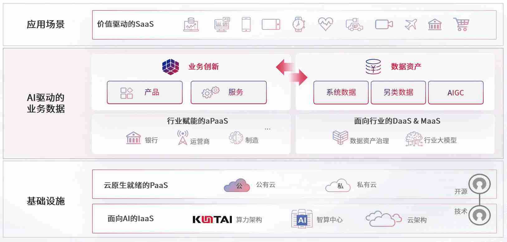 数字时代,,,围绕企业数字化转型的关键要素,,尊龙数码开创性的提出数云融合战略和技术体系框架,,着力在云原生、、、、数字原生、、、AI原生和信创产业上架构产品和服务能力,,,为处在不同数字化转型阶段的快消零售、、、、汽车、、、、金融、、、、医疗、、、政企、、、教育、、、运营商等行业客户提供泛在的敏捷IT能力和融合的数据驱动能力,,构建跨界融合创新的数字业务场景和新业务模式,,,助力企业级客户建立面向未来的核心能力和竞争优势,,,,全面推动社会的数字化、、、智能化转型升级。。。。