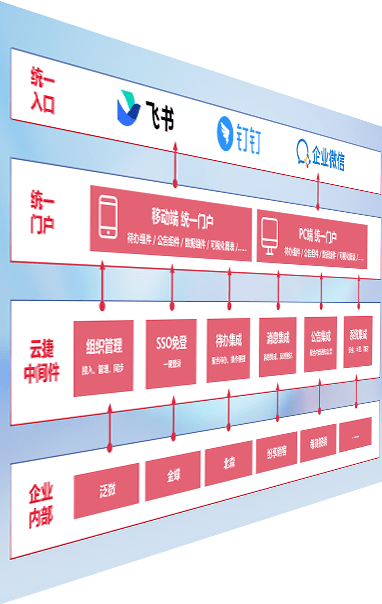 对协作平台提供支持服务,,,,支持企业应用与协作平台对接,,包含组织同步、、、消息集成、、、待办集成等。。支持目前主流的协作平台:钉钉、、、企微和飞书。。